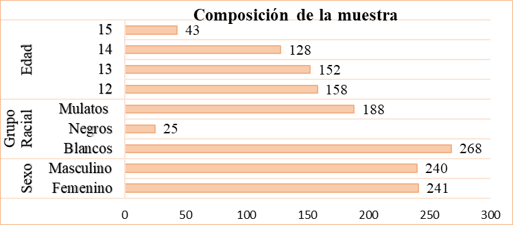 Incluir como muestra la totalidad de los estudiantes se fundamentó además en ser una estrategia de heterogeneidad (Hernández-Sampieri & Mendoza, 2023; Valles, 1999), que permitió capturar diferentes perspectivas del fenómeno estudiado y representar la complejidad de este. Fueron seleccionados 481 estudiantes (Figura 1), lo cual superó los criterios para este tipo de estudio que oscilan entre 30 y 50 casos (Hernández-Sampieri & Mendoza, 2018; Creswell, 2013), y permitió obtener una representación significativa de las dinámicas sociales y vinculadas al color de la piel en el contexto educativo, facilitando una comprensión más completa del fenómeno investigado, así como mayor profundidad y riqueza de los datos obtenidos.